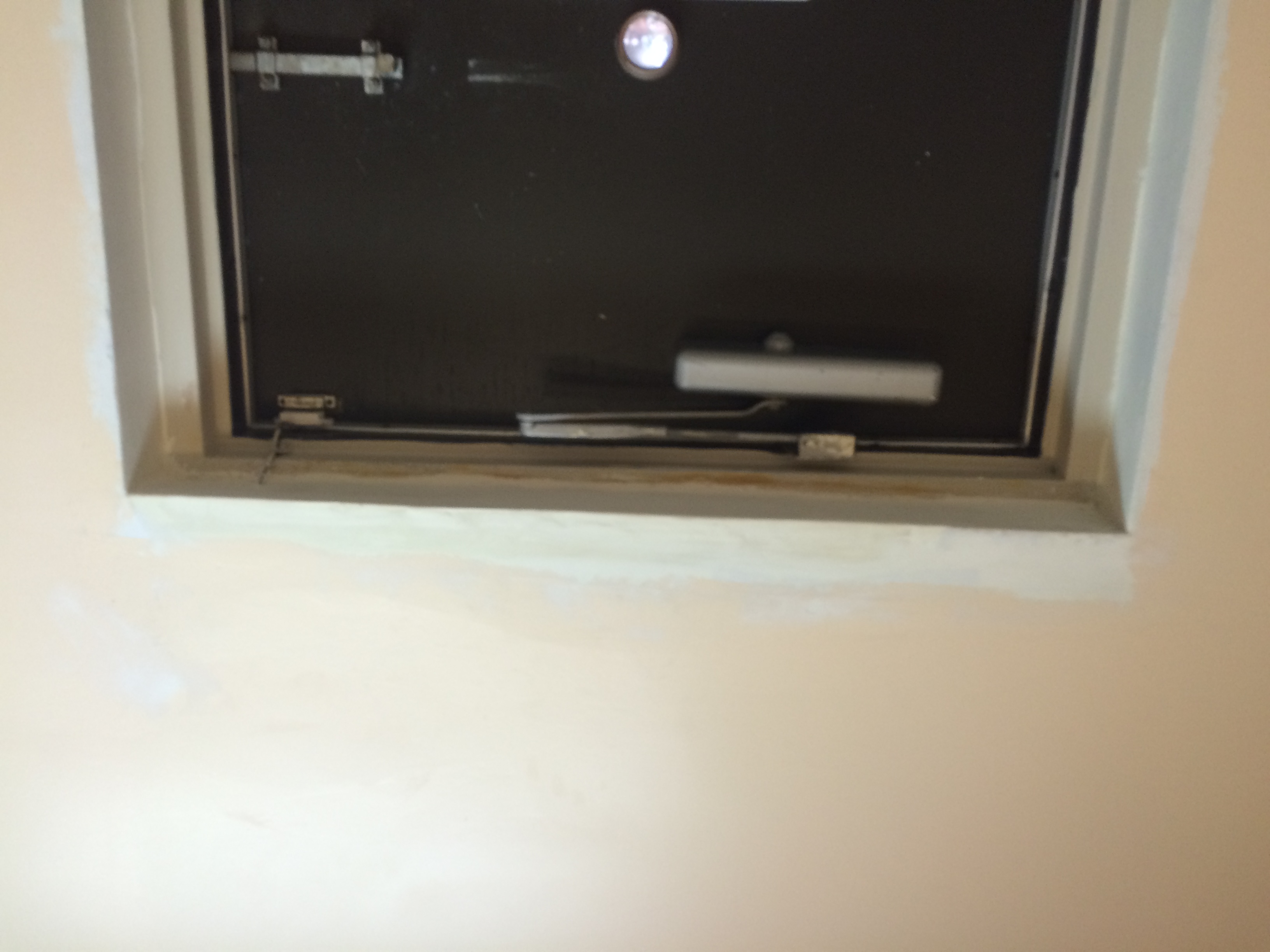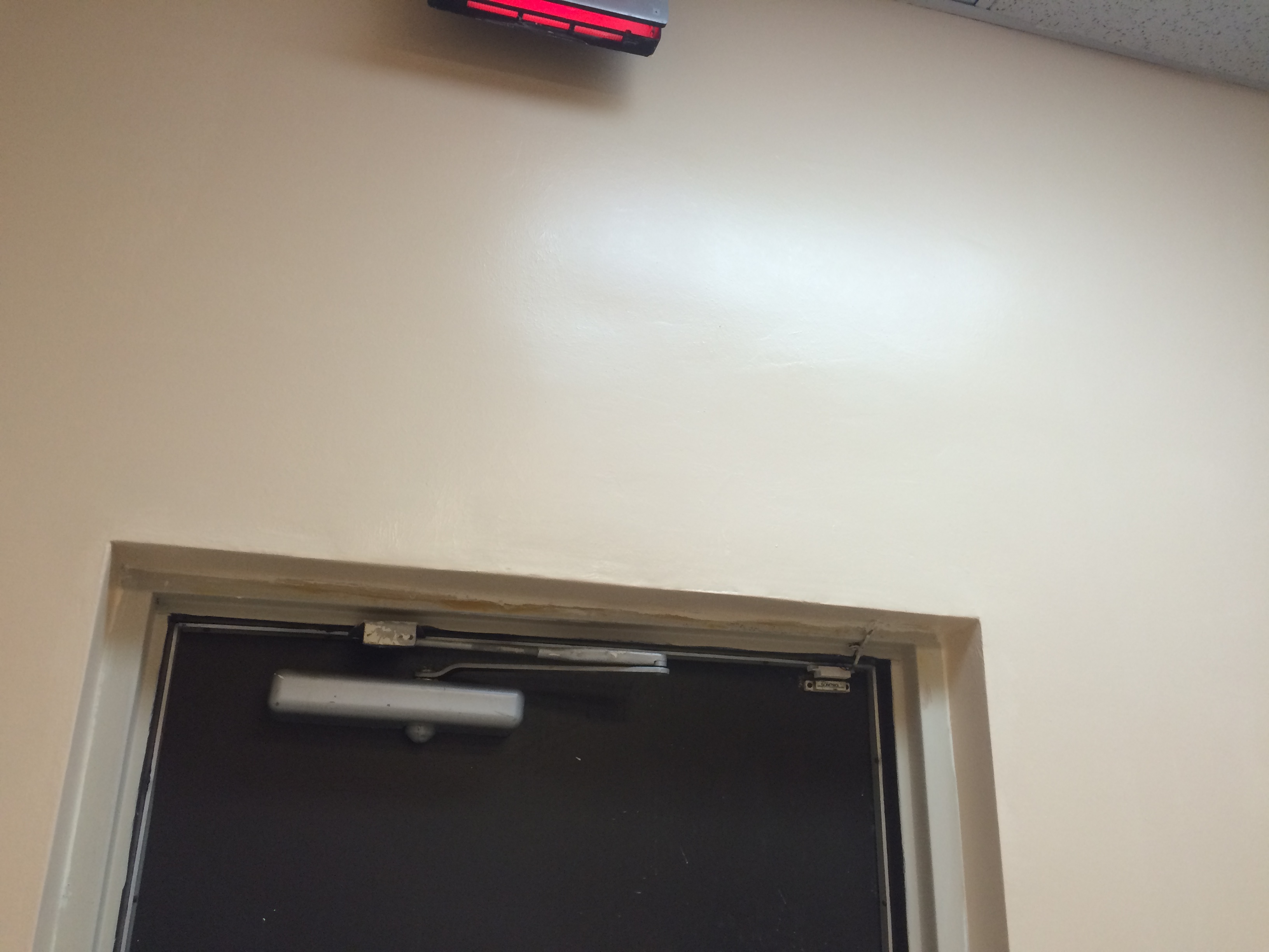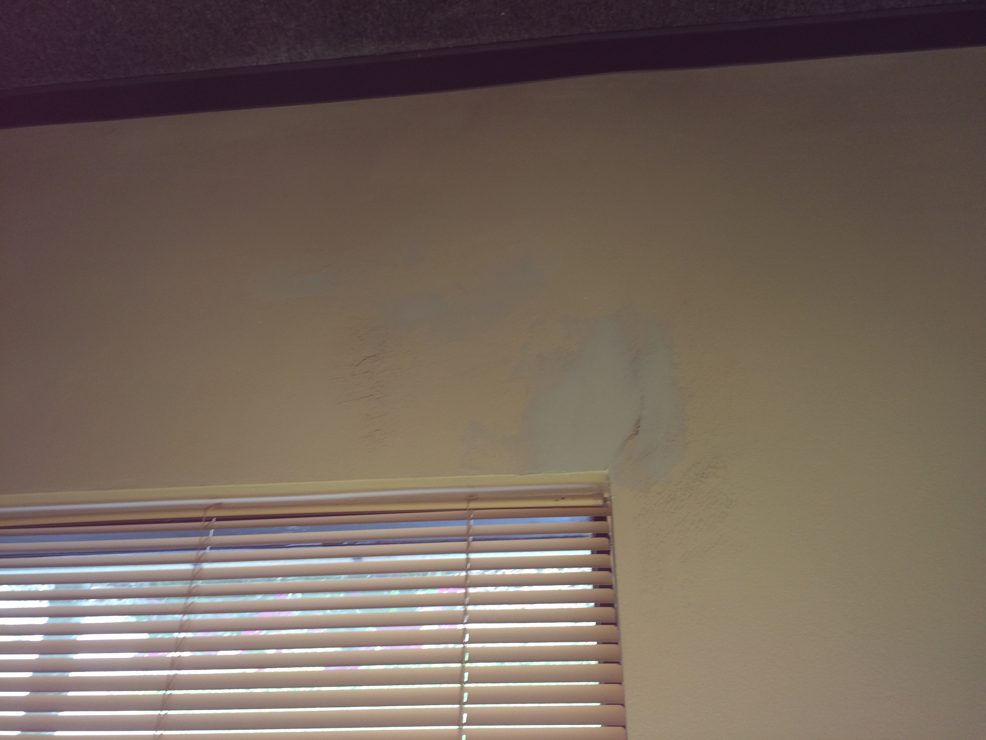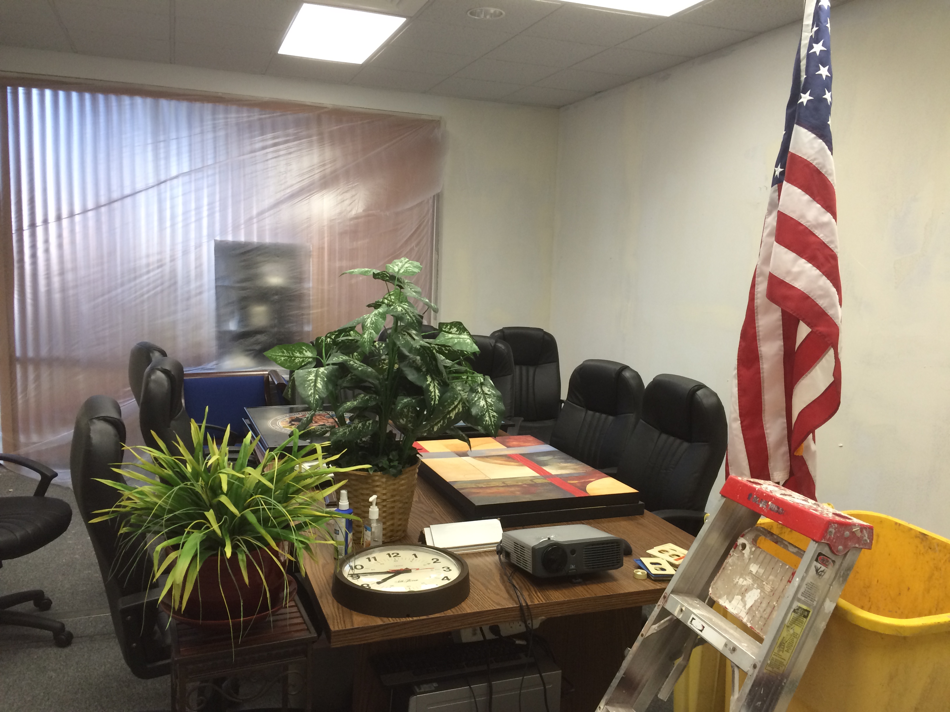For this small business I removed the old wallpaper, then did a skim coat to even the walls out before applying a finish coat of paint. These photos are the the second phase of the process when we were doing the skim coating and some drywall repair. A few pictures of more then one step in the process as well.